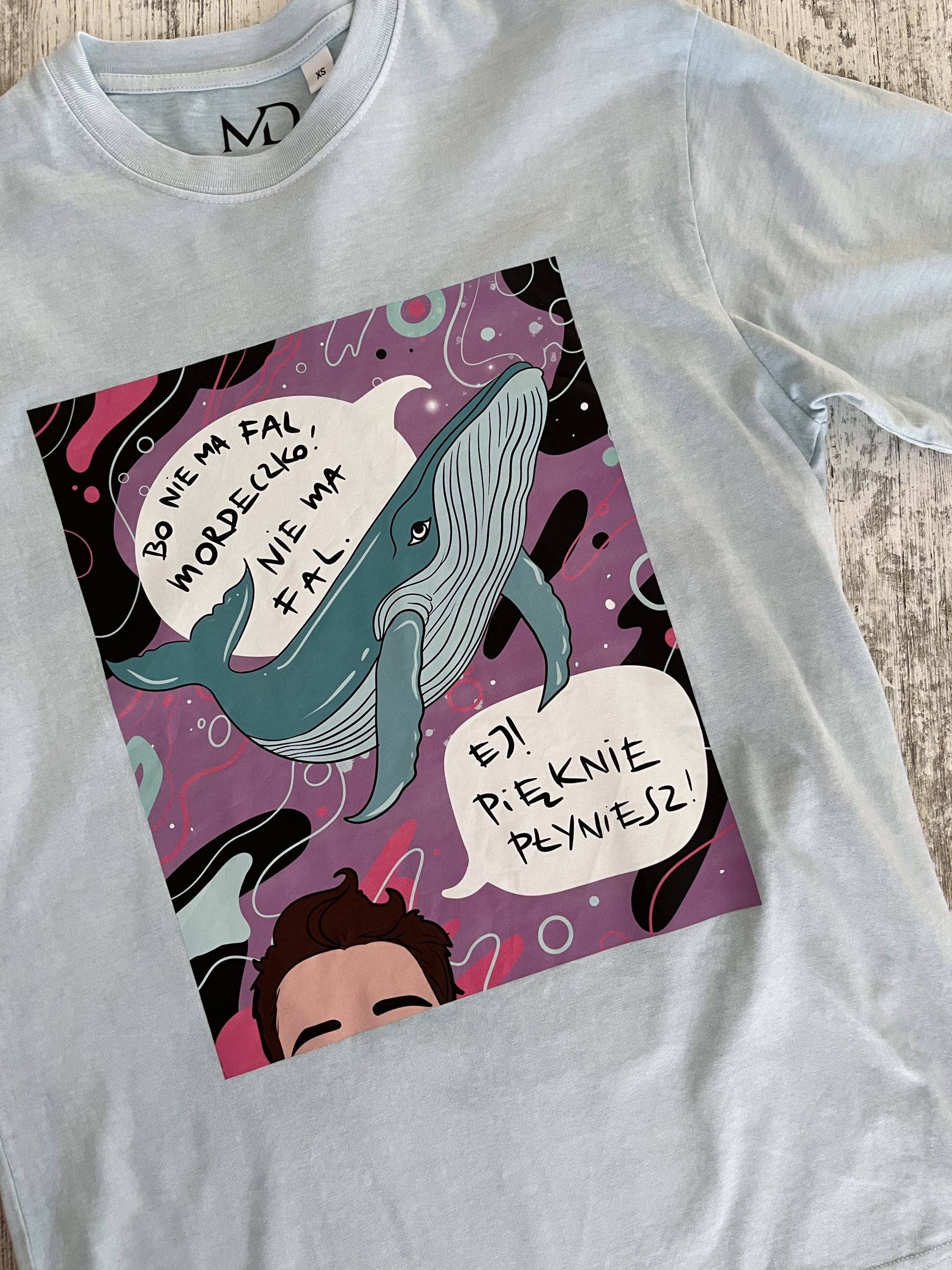 Koszulka ręcznie farbowana „ej, pięknie płyniesz”mięta